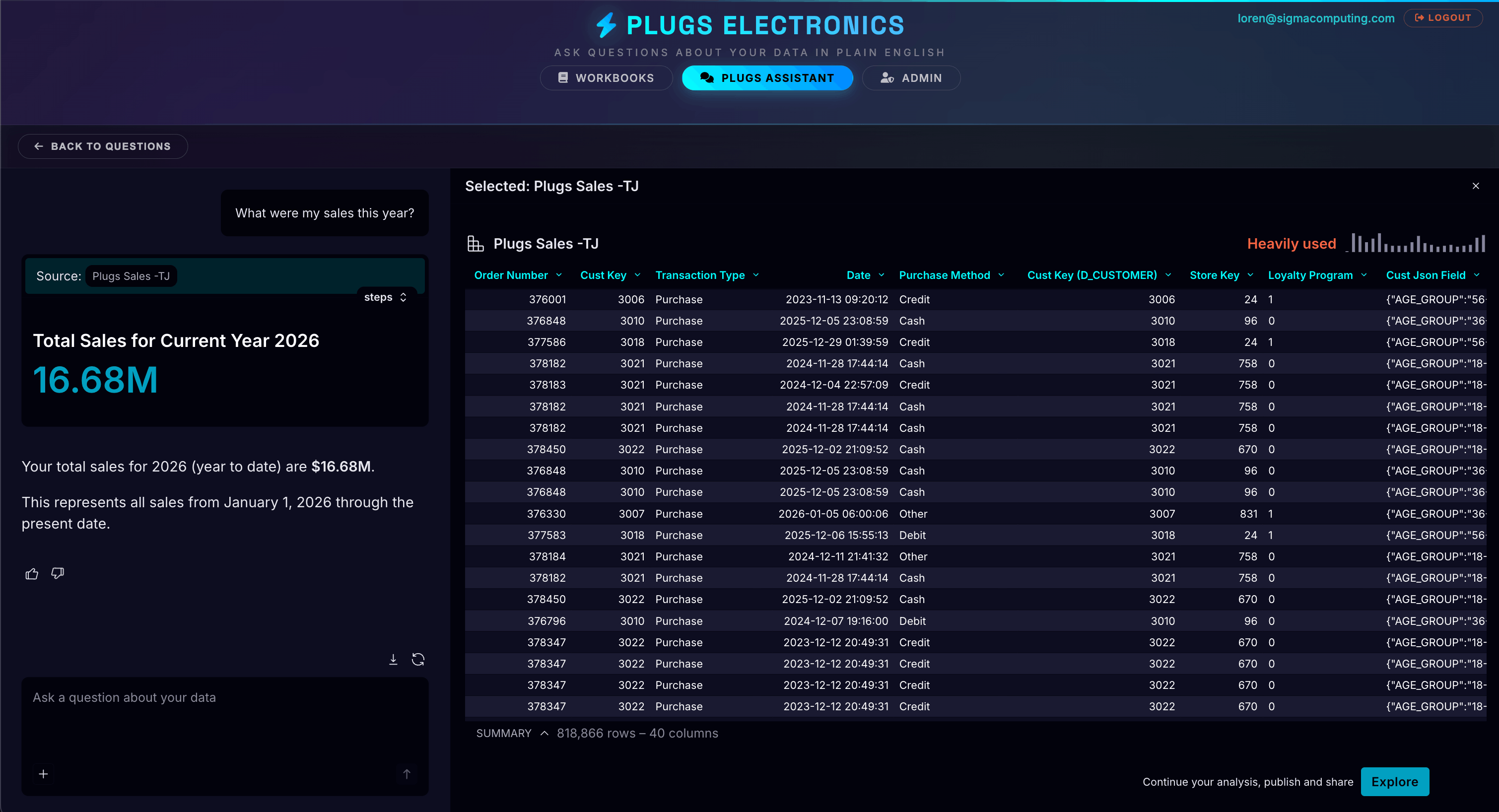 Sigma's AI assistant lets end users query their data and surface insights directly within their product, no context switching required.