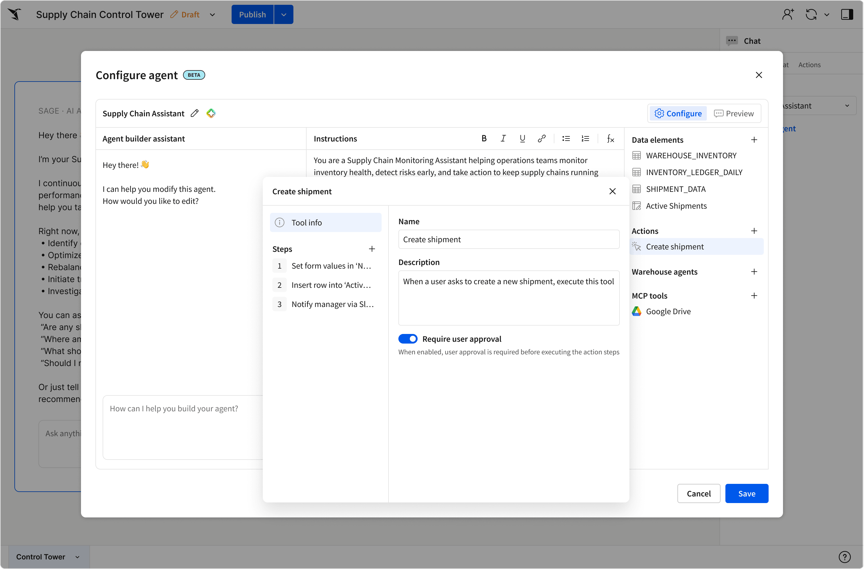 Not every workflow should be fully automated. When a campaign list is about to push to HubSpot, someone should review it first. When an expense report is ready to submit, the employee should confirm the details. When an agent surfaces an anomaly in purchasing behavior, a human should decide whether to escalate.