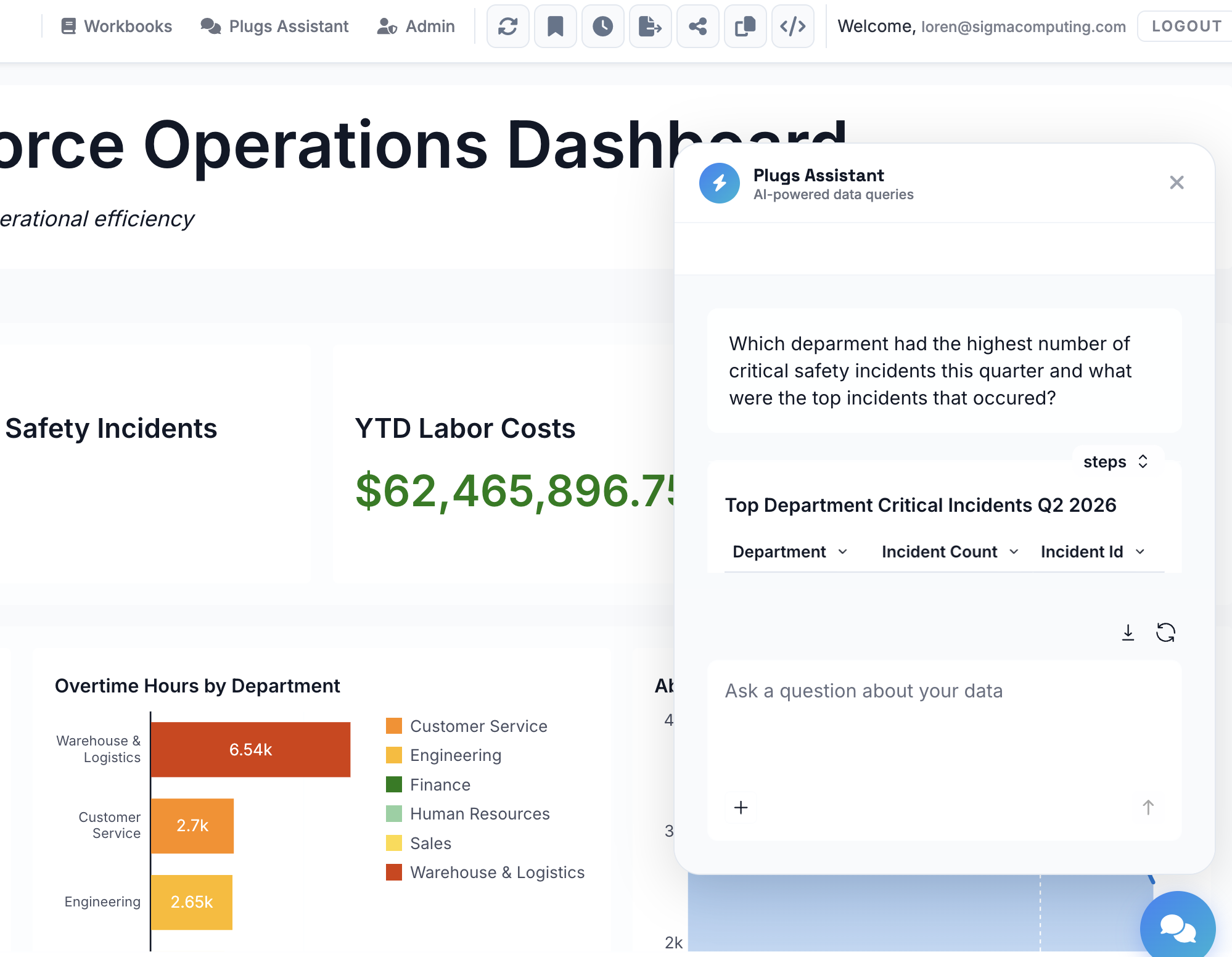 Ask questions about your data directly within your workbook based on the embedded analytics.