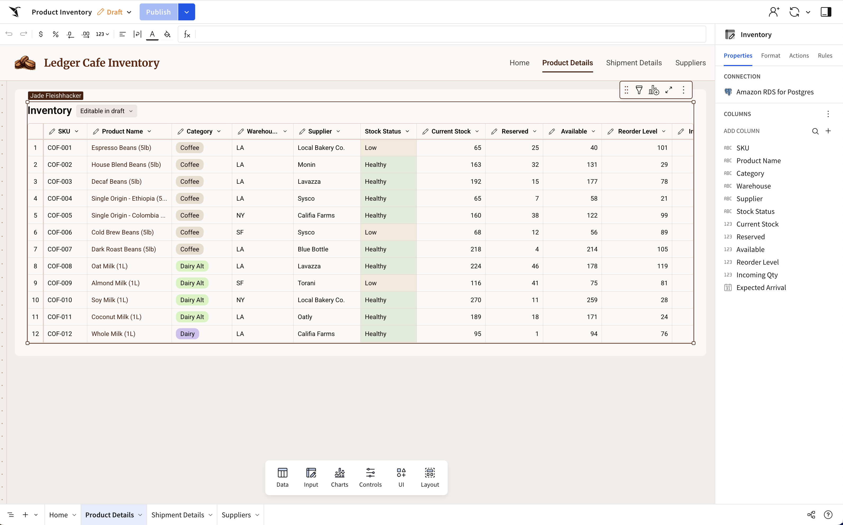 - Inventory Management: Operations teams can manually override stock levels or input "expected arrival" datebus for shipments directly in a dashboard.