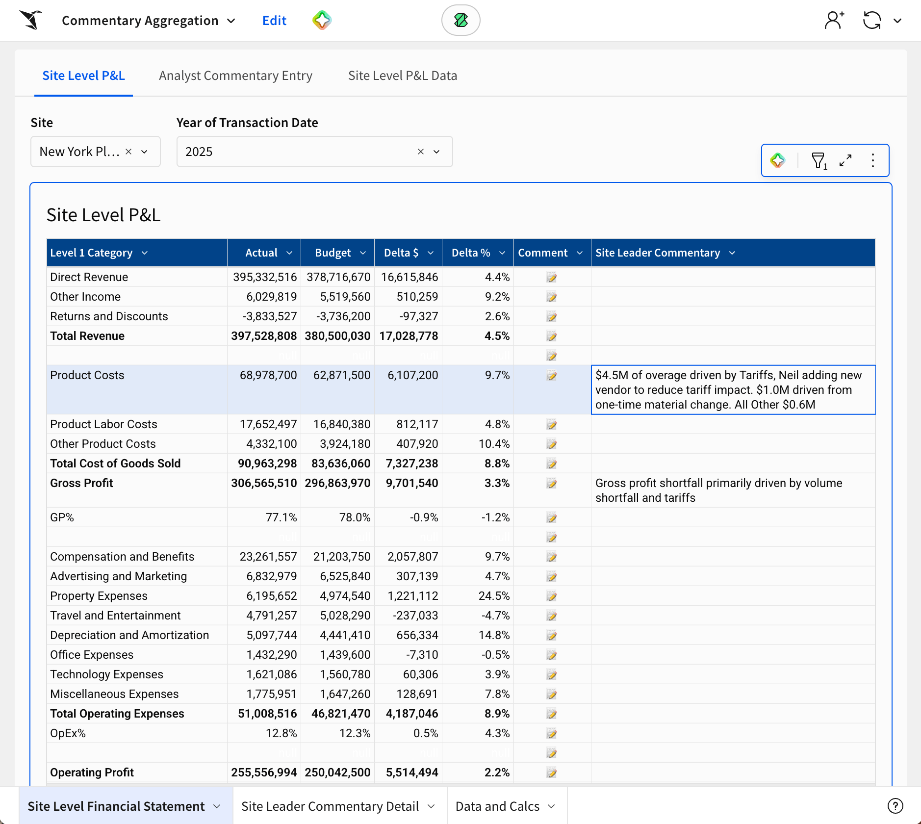 Before you can fix the problem, you need to understand what it is first. In most organizations, producing the P&L is not the hard part. You can generate it from an ERP or a planning tool without much friction. The real work begins after it’s exported. Analysts go line by line and start adding context at a granular level. What happened in the supply chain? What happened in sales? Why did labor move? Each account or department ends up with its own explanation, typically captured in a spreadsheet that lives outside the system that produced the numbers.