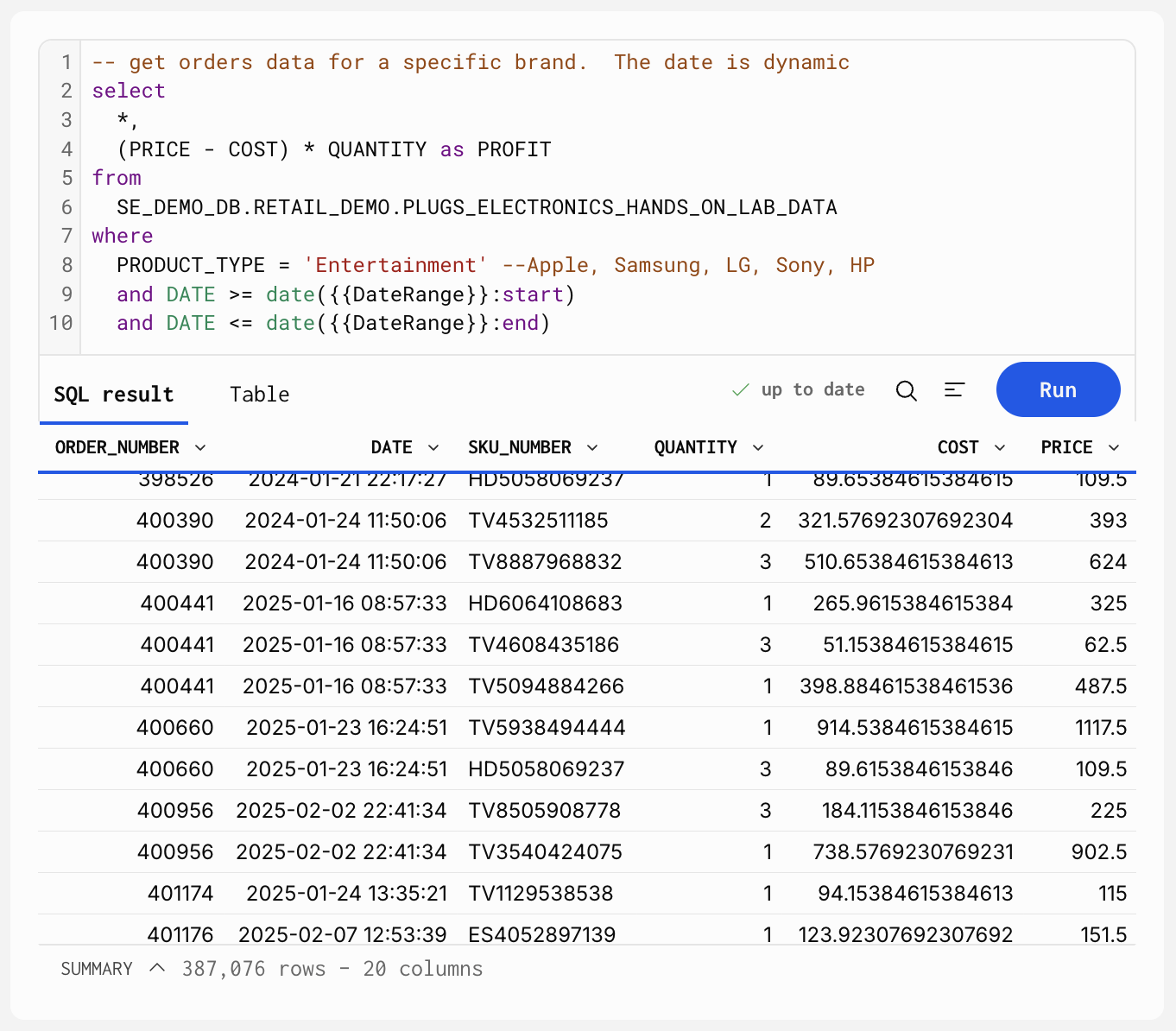 Analyze trillions of records in real time, powered by the scale and speed of your cloud data warehouse.