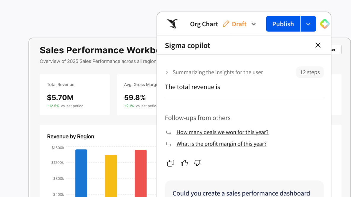 Sigma AI helps teams create and refine formulas, enrich data, and assemble workflows faster. Every step remains auditable, ensuring that humans are always in the loop and in control.