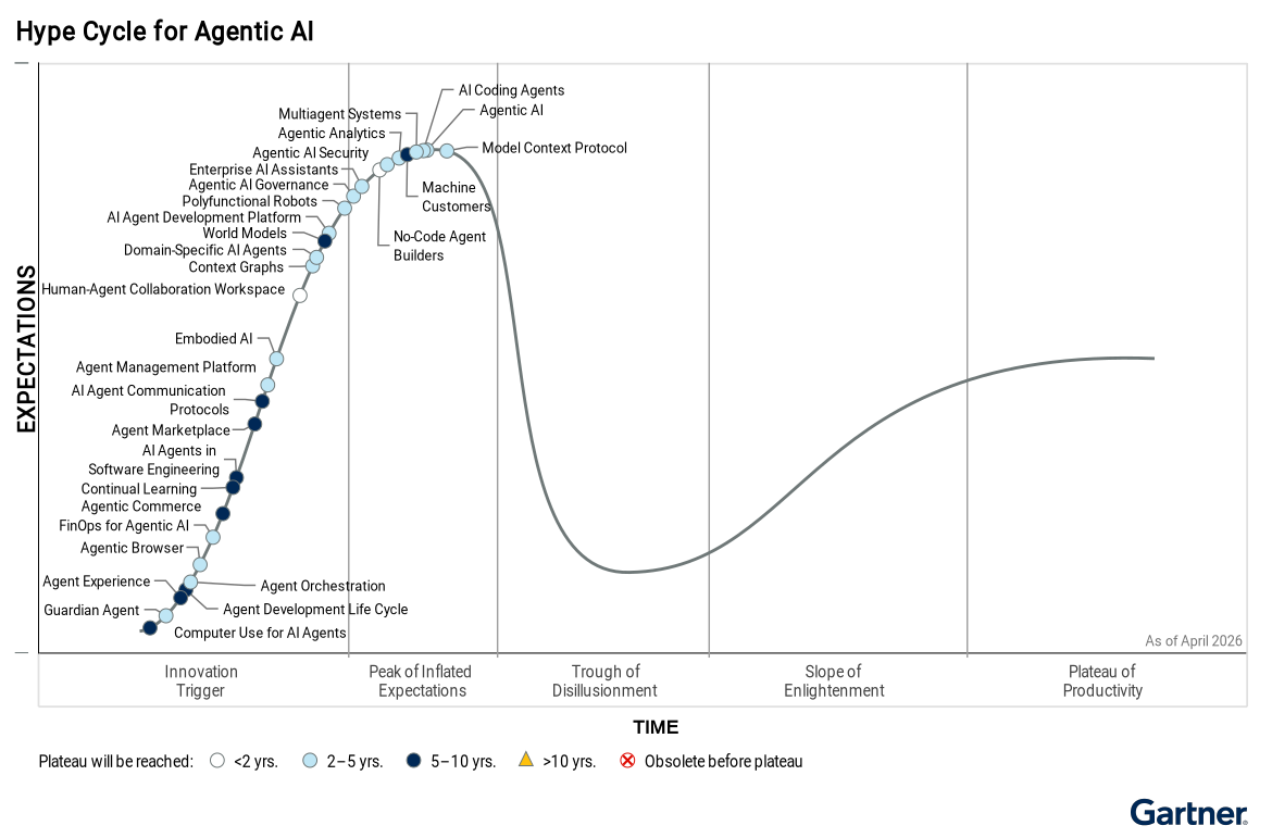 Gartner, Hype Cycle for Agentic AI, Rajesh Kandaswamy, Leinar Ramos, Gary Olliffe, Tom Coshow, Pieter den Hamer, Erick Brethenoux, 2 April, 2026.