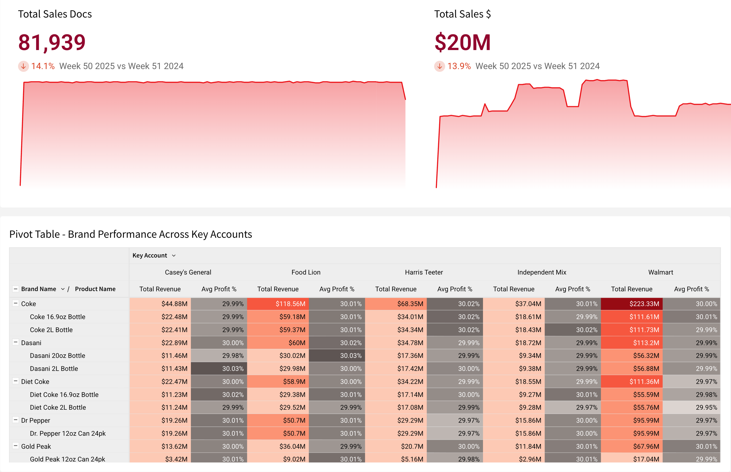 Match supply with demand instantly. Drill down from regional views to individual SKU performance on live POS data to identify stockout risks before they impact revenue.